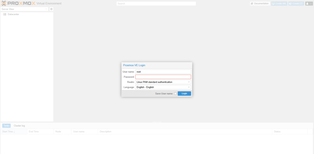 Password: The password for root@pam