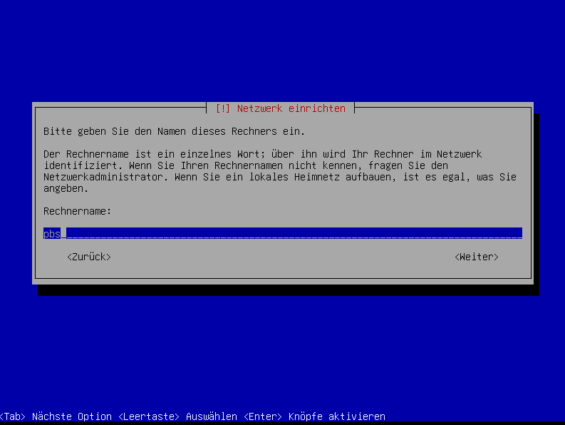 When prompted, set the hostname to match the VM name, for example: pbs.