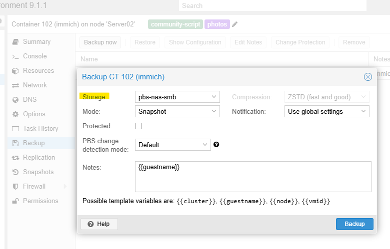 Datacenter → pbs-nas-smb → Backups