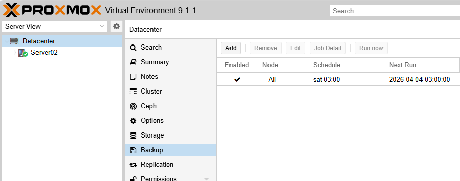 Datacenter → Backup
