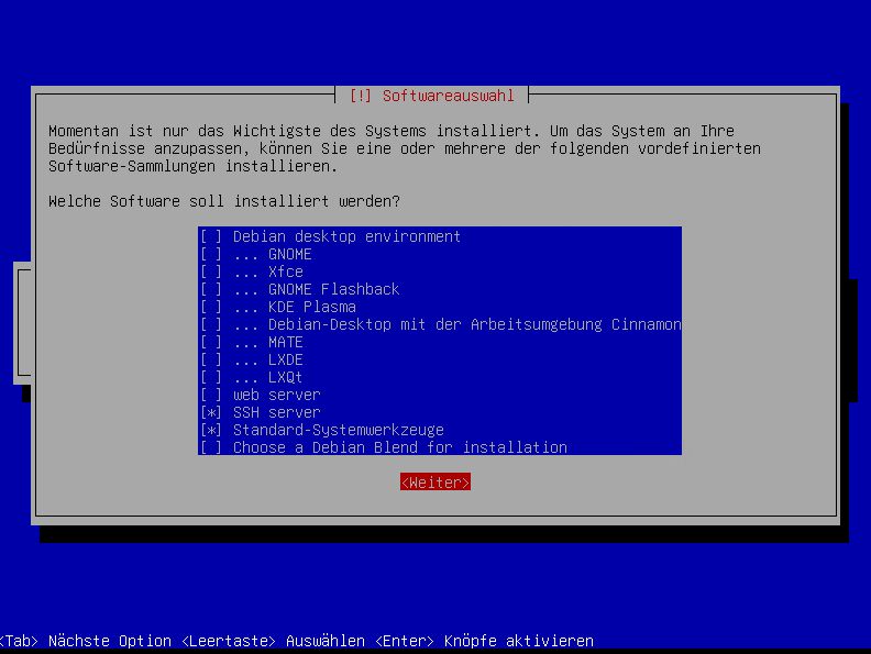 Only select SSH server and standard system utilities