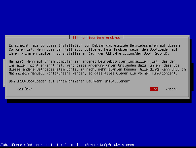 Since this system will only run a single operating system, you can safely install GRUB on the primary disk.