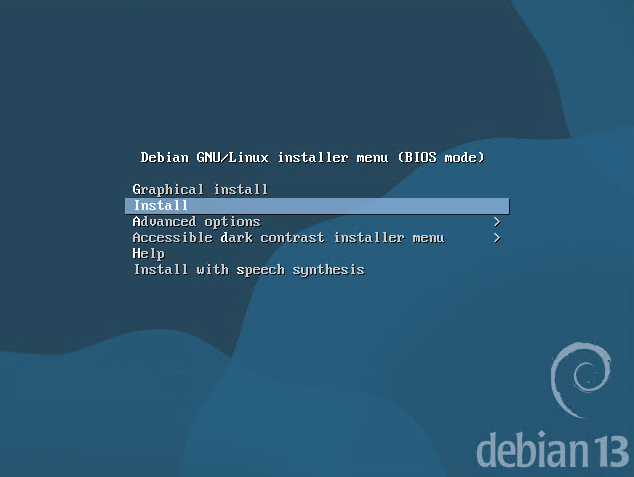 As a first step, you will need a Debian 13 ISO image, which can be downloaded here: Debian — Downloading Debian